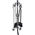 accessori per camino in acciaio verniciato, Include un supporto a tre piedi, 1 spazzola, 1 paletta, 1 pinza e 1 attizzatoio. Il design a forma di gancio delle maniglie ne facilita il prelievo. Colore nero.
